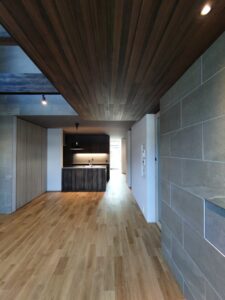 1 内外にタイルを贅沢に採用。質感に包まれたラグジュアリーな空間